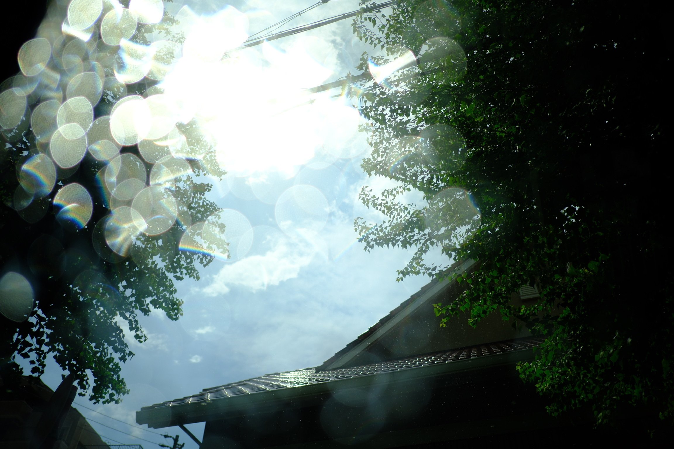 雨上がりに車の後部座席から外の流れ行く景色を撮っていると、キラキラとした丸いものがたくさん写りました!