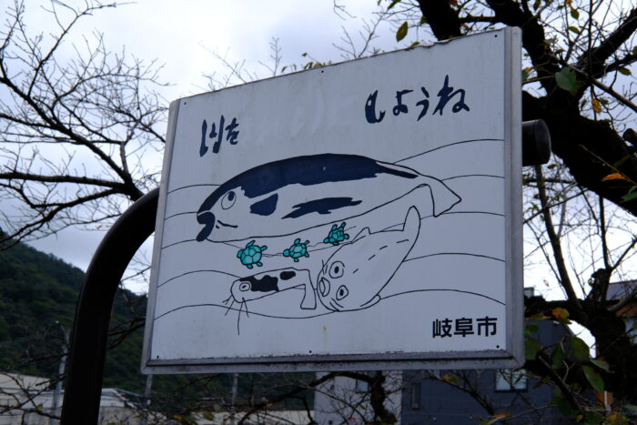 歩き進めると「川をきれいにしようね」の看板!私のイラストのタッチと似ていて親近感が湧いた…!