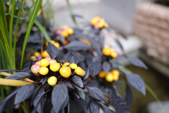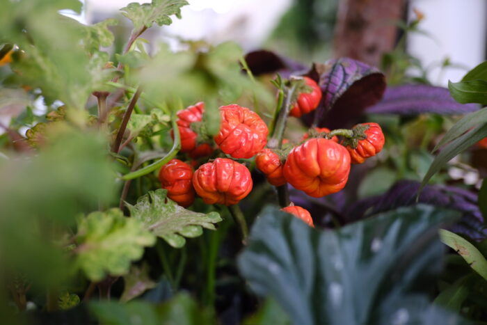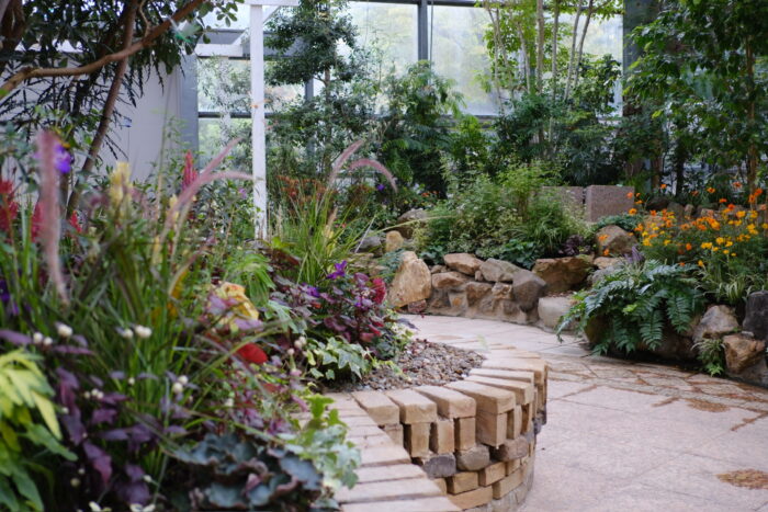 グリーンピア春日井の温室は、見やすい高さに植物が展示されています。