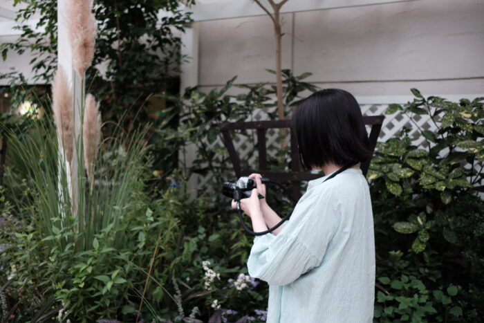 私の使っているカメラ(FUJIFILM X-T50)はチルト液晶なので、無理に体勢を変えなくても、画面を動かせばアングルが確認できます。