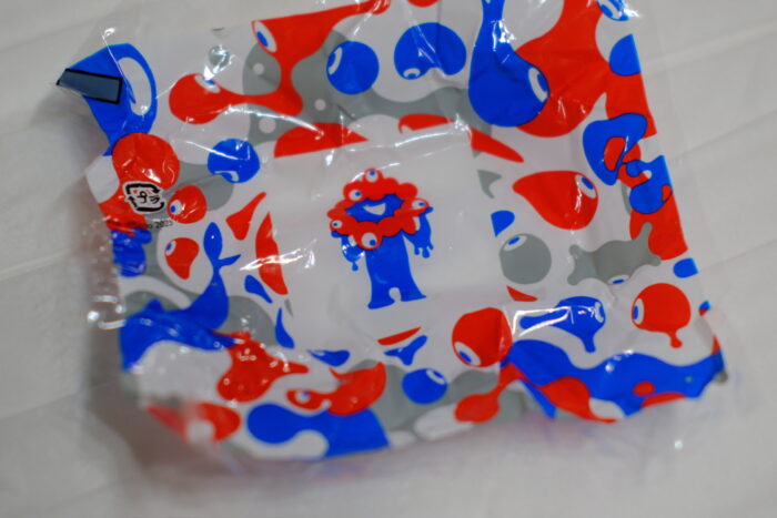 ミャクミャクのデザインに包まれたお菓子を後ろから撮影した画像