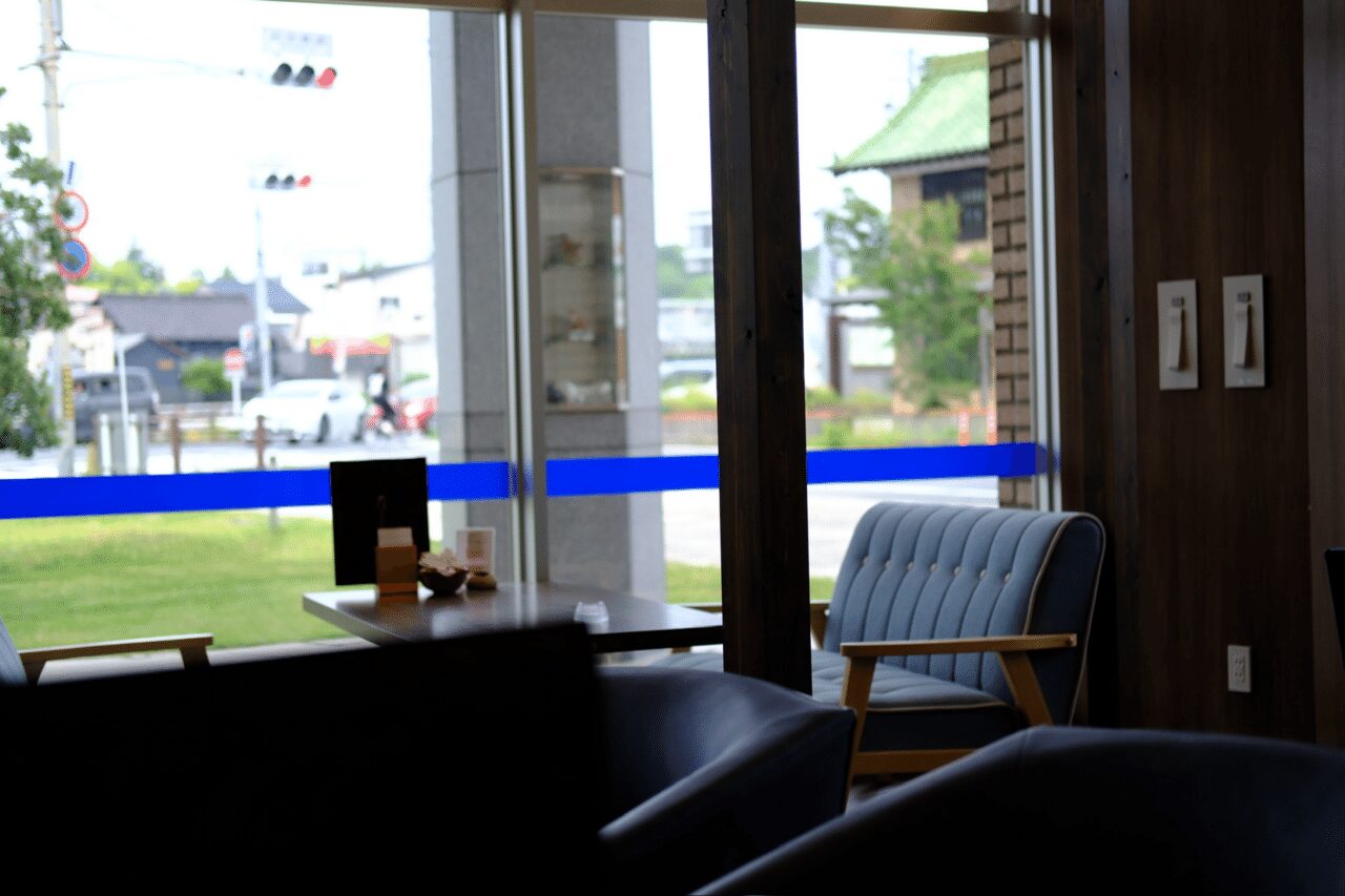 店内の大きな窓からは、のんびりとした風景が広がり、開放的な気分での休憩時間を過ごしました。