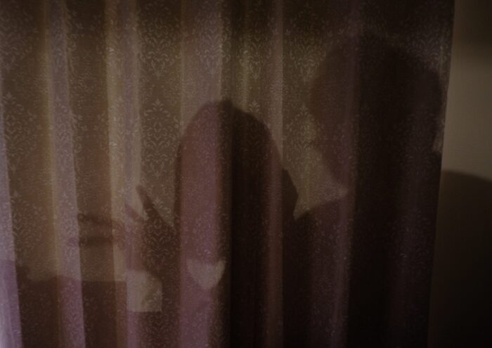 影で遊ぶ私たち。寝る前に電気を全部消す前まで、明るい夫のおかげで賑やかです!