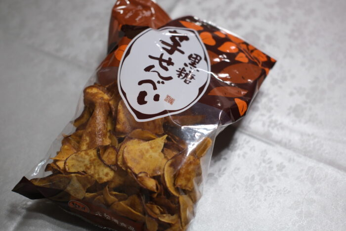 私たちの大好きな芋せんべい。黄金色のおやつタイムとして、最近も二人でパリパリと食べている。