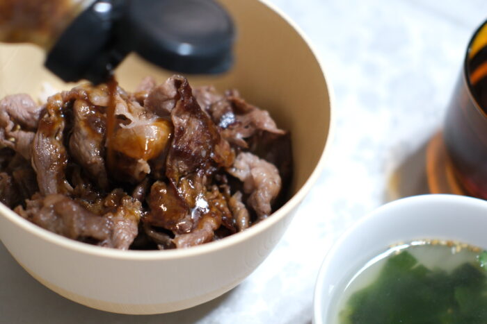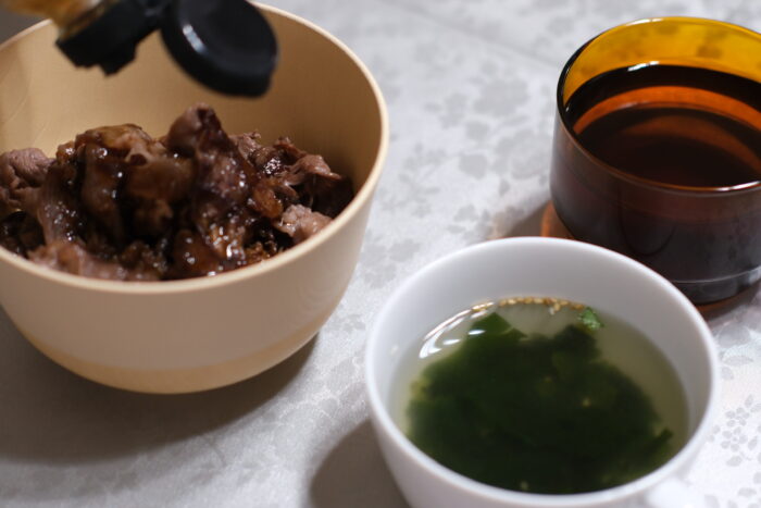 今夜は夫が作ってくれた牛焼肉丼でした。